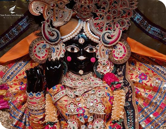 Shri Bankey Bihari Mandir is a Hindu temple dedicated to Lord Krishna, in the holy city of Vrindavan in the Mathura district of Uttar Pradesh. It is situated near Shri RadhaVallabh Temple. This temple is among the 7 temples of Thakur of Vrindavan including Shri RadhaVallabh Ji, Shri Govind Dev Ji and four others. Bankey Bihari Ji was originally worshipped at Nidhivana. Bankey means “bent in three places” and Bihari means “supreme enjoyer.” The image of Lord Krishna stands in the Tribhanga posture. Haridas Swami originally worshipped this devotional image under the name of Kunj-Bihari (“Enjoyer of Lakes”).
