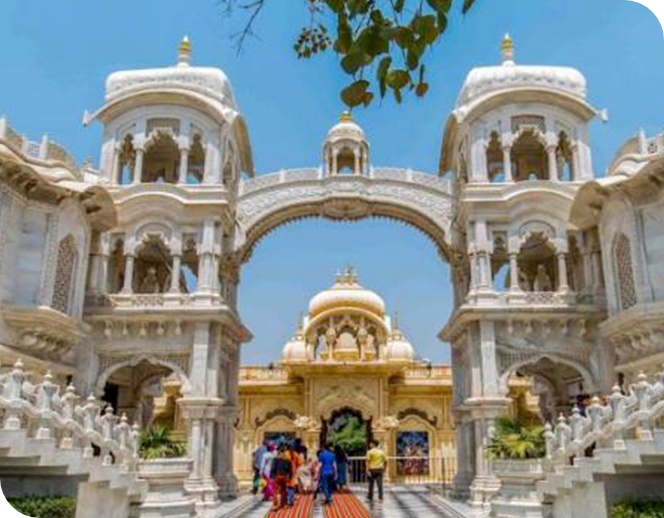 Figures of Shri Krishna and his followers depicting important events surrounding the Lord’s existence cover the main temple. The presiding deity are Shri Radha Govind (Radha Krishna) and Shri Sita Ram. A 73,000 square feet, pillar-less, dome shaped satsang hall is being constructed next to Prem Mandir, which will accommodate 25,000 people at a time.